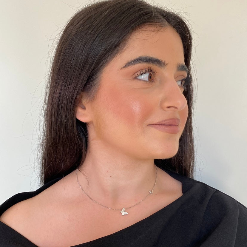 Leicht wie ein Flügelschlag, die Butterfly Love- Halskette aus hochwertigem 925er Sterling Silber verleiht jedem Look eine verspielte Eleganz. Im Mittelpunkt stehen zwei filigraner Schmetterlinge, die Leichtigkeit und Freiheit symbolisieren. Kleine funkelnde Zirkonia Steine besetzen die eine Schmetterling und fangen das Licht bei jeder Bewegung ein.
