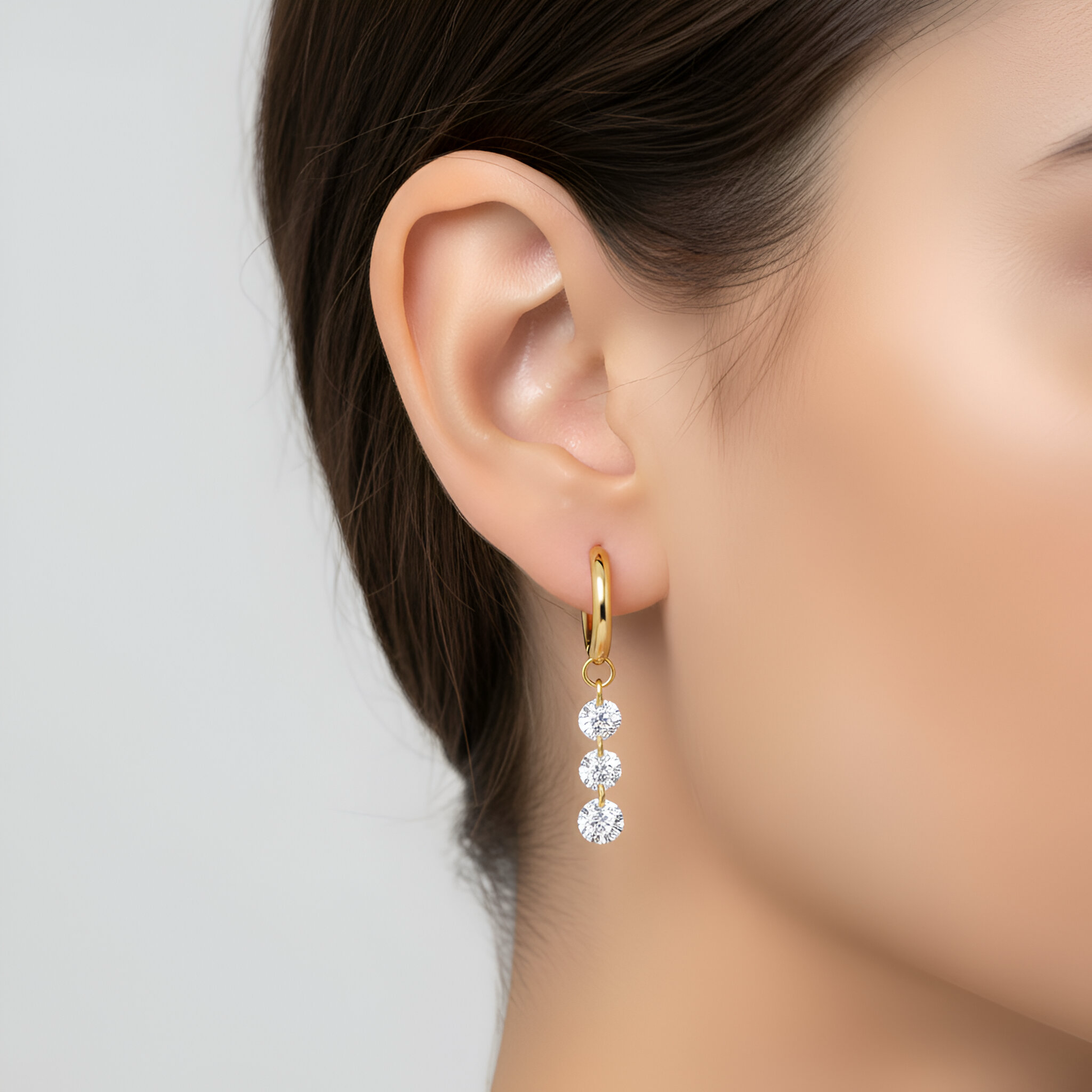 Diese eleganten Ohrringe vereinen schlichte Form mit luxuriösem Glanz. Die goldfarbenen Creolen aus hochwertigem Edelstahl sind mit funkelnden, klaren Zirkonia-Steinen verziert, die bei jeder Bewegung das Licht einfangen und ein strahlendes Funkeln erzeugen. Die zarten, herabhängenden Kristalle verleihen den Ohrringen einen edlen und femininen Look – perfekt für festliche Anlässe, romantische Abende oder als stilvolles Highlight im Alltag.