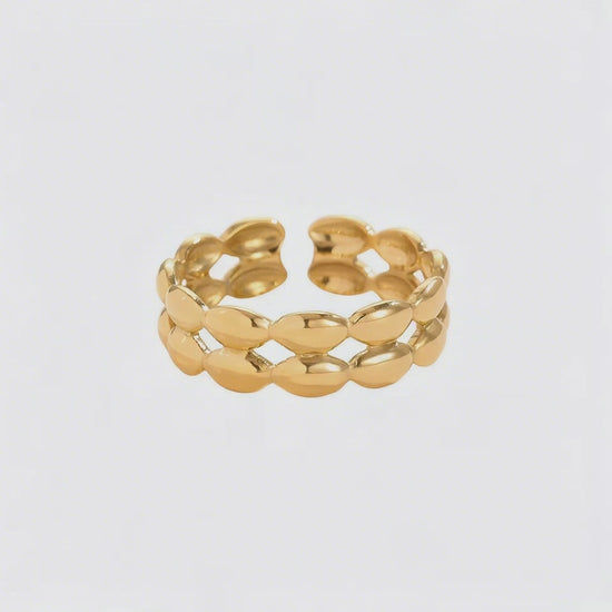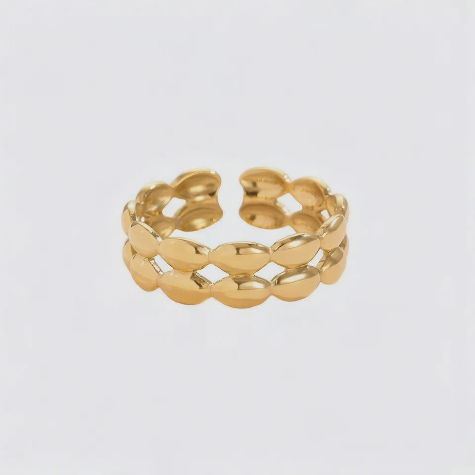 Dieser edle Ring verbindet zeitlose Eleganz mit moderner Raffinesse. Aus hochwertigem Edelstahl gefertigt und mit einer 18K Vergoldung veredelt, ist er nicht nur ein stilvoller Blickfang, sondern auch besonders langlebig. Das fein gearbeitete Muster verleiht dem Ring eine kunstvolle Note.