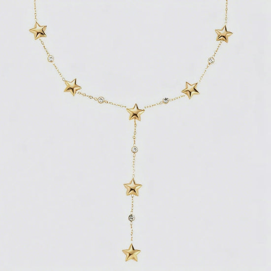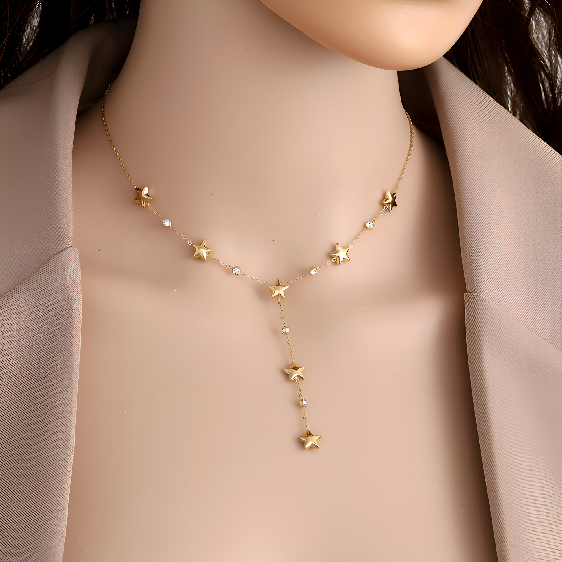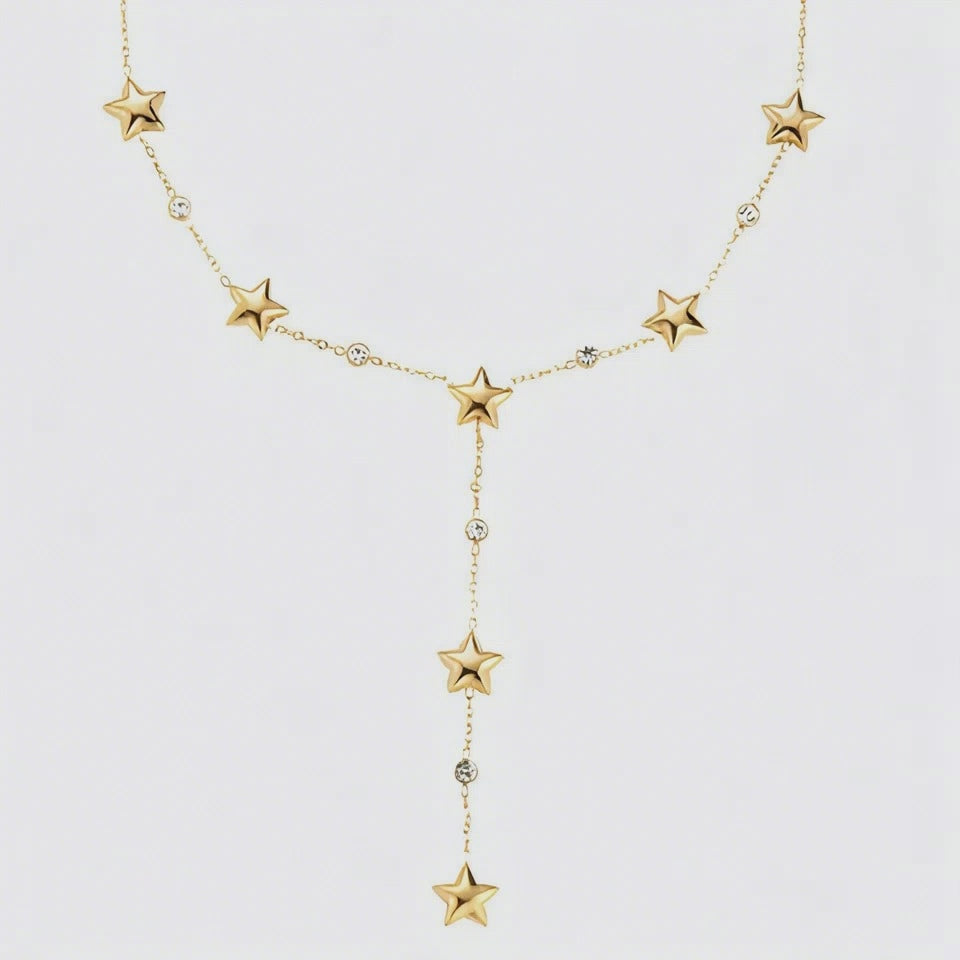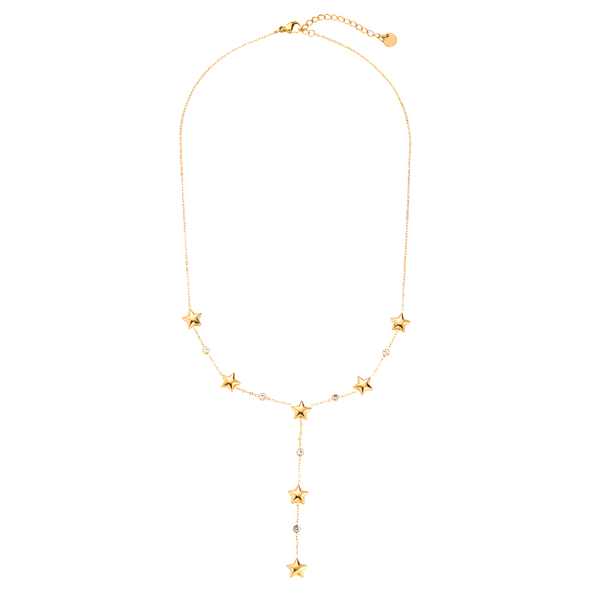 Strahle wie der Nachthimmel! Diese zarte, vergoldete Edelstahlkette verzaubert mit mehreren kleinen Stern-Anhänger und funkelnden, klaren Steinchen, die wie winzige Sternlichter schimmern. Das besondere Y-Design setzt ein elegantes Highlight am Dekolleté und verleiht jedem Outfit eine edle, feminine Note✨.