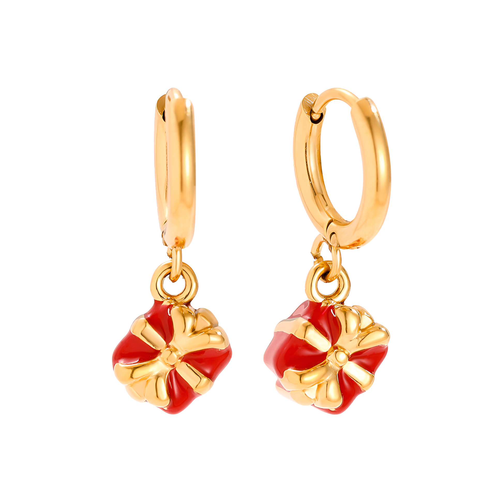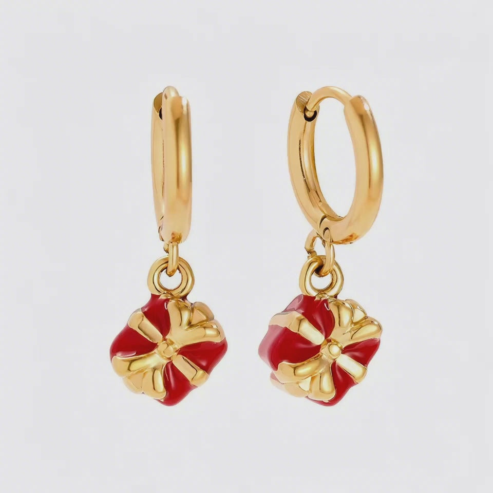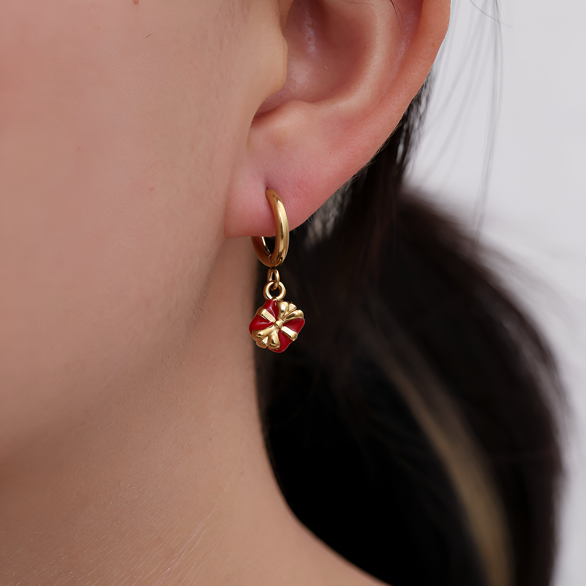 Verschenke festliche Freude – oder trage sie selbst! Diese liebevoll gestalteten Ohrringe zeigen eine kleine rote Geschenkschachtel, verziert mit einer funkelnden goldenen Schleife. Perfekt, um deinen Look in der Weihnachtszeit zu zaubern oder als charmantes Geschenk für Freunde und Familie.