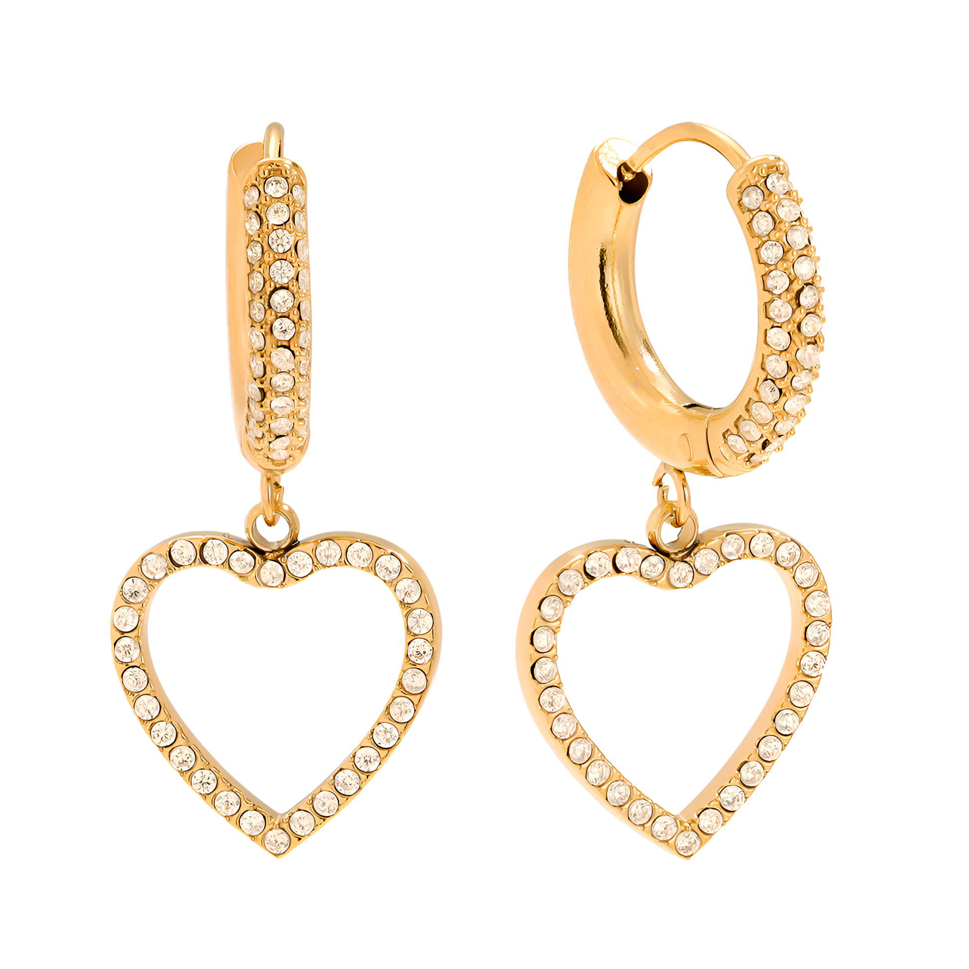 Diese eleganten Kreolen in zarter Herzform sind mit funkelnden Zirkoniasteinen besetzt und verleihen jedem Look eine edle, feminine Ausstrahlung. Das Herzdesign steht für Liebe, Verbundenheit und Stil – kombiniert mit dem feinen Glanz der Zirkoniasteine entsteht ein zeitloses Schmuckstück, das zu jedem Anlass passt.