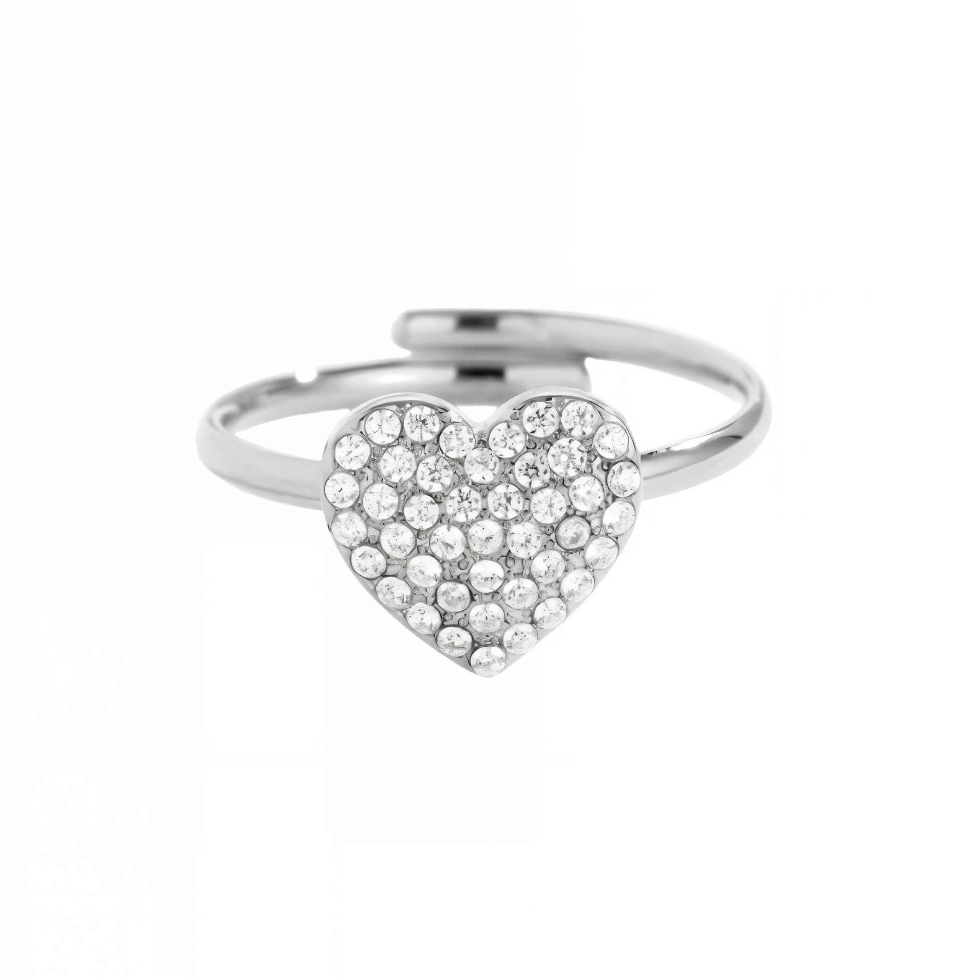 Dieser wunderschöne Edelsteinring begeistert mit einer romantischen Herzform, die vollständig mit funkelnden weißen Zirkonia-Steinen im Inneren besetzt ist. Jeder einzelne Stein reflektiert das Licht auf elegante Weise und verleiht dem Ring einen strahlenden, luxuriösen Glanz. Das Herzsymbol steht für Liebe, Nähe und zeitlose Eleganz – perfekt als Geschenk für einen besonderen Menschen oder als liebevolles Schmuckstück für sich selbst.