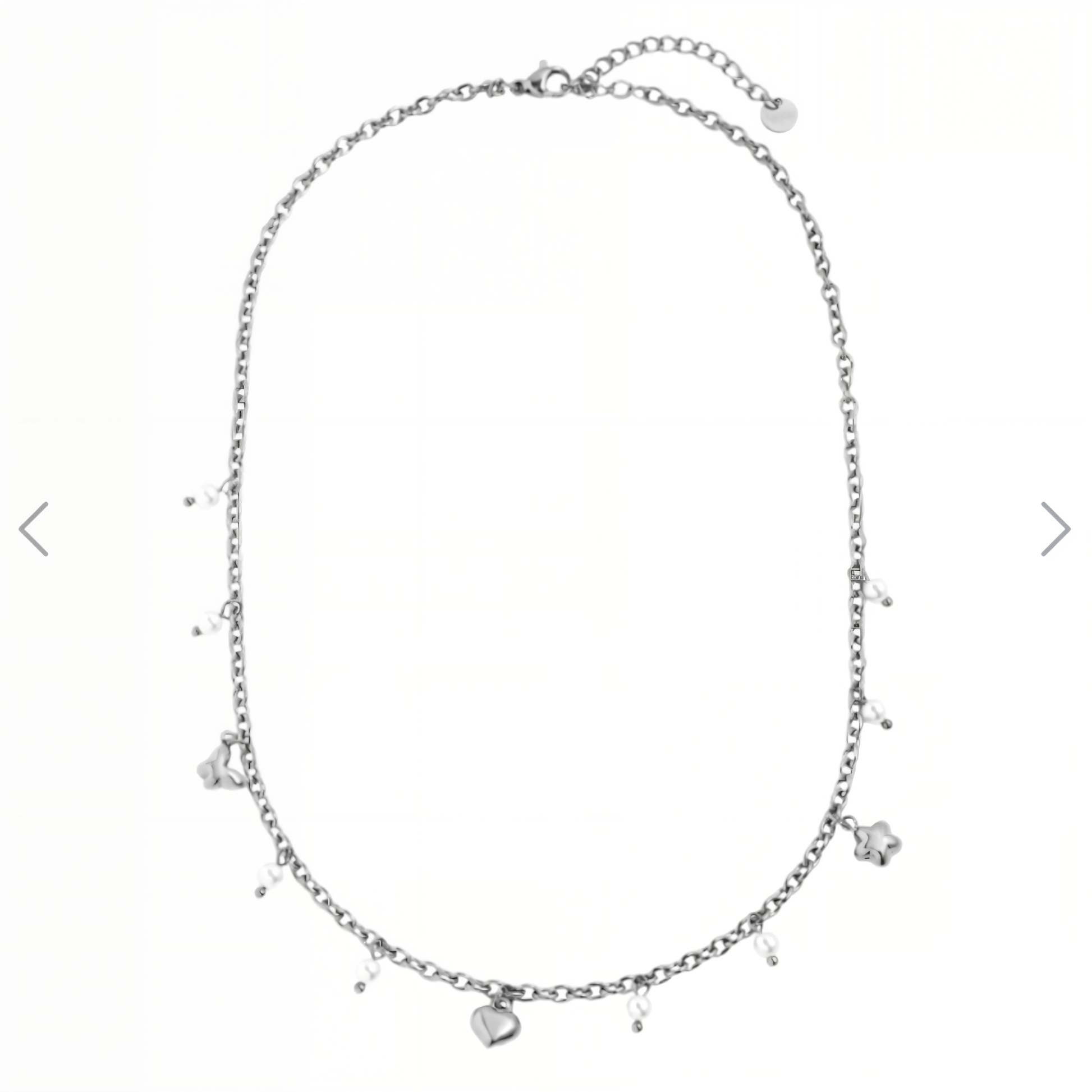 Dieses zauberhafte Halskette vereint die Schönheit der Natur mit liebevollen Symbolen: Ein filigraner Schmetterling, eine zarte Blume und ein stilvolles Herz schmücken die Kette und verleihen ihr einen verspielten, femininen Charme. Kleine, schimmernde weiße Perlen setzen sanfte Akzente und runden das Design harmonisch ab.
