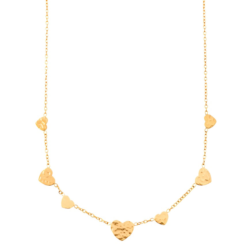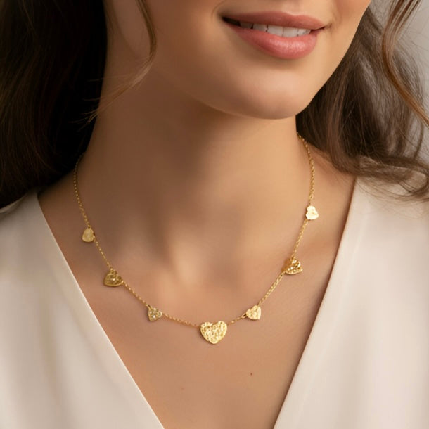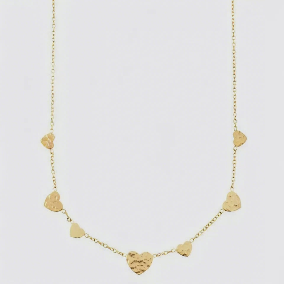 Verleihe deinem Look einen Hauch von Romantik mit dieser eleganten Edelstahlkette, die mit zahlreichen goldenen Herzchen verziert ist. Jedes Herz glänzt in edlem Goldton und setzt funkelnde Akzente, die das Licht wunderschön reflektieren. Ein Must-Have für alle, die Liebe und Stil zugleich tragen möchten.